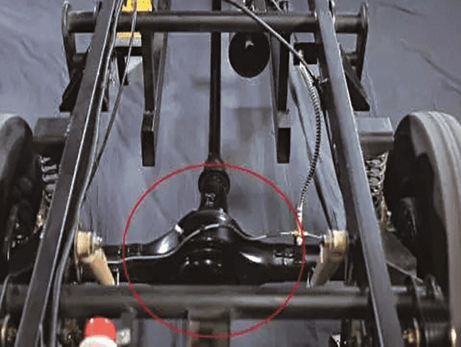 中軸技術(shù)源起何方?萬虎工業(yè)為何執(zhí)著開發(fā)中軸技術(shù)呢?目前市面上的三輪摩托車基本以偏軸三輪車為主,輸出傳動軸位置偏向左側(cè),輸出配重難以做到均衡,這對整車行駛過程中的平穩(wěn)性和舒適性提出很高的要求,甚至?xí)绊懙睫D(zhuǎn)彎時的安全性。其實軸傳動輸出的問題早已在汽車行業(yè)解決,那就是發(fā)動機(jī)動力輸出,后橋1:1配置,于是萬虎工業(yè)率先提出在三輪摩托車使用中軸的概念,并利用自身的研發(fā)優(yōu)勢付之為現(xiàn)實。如圖所示: